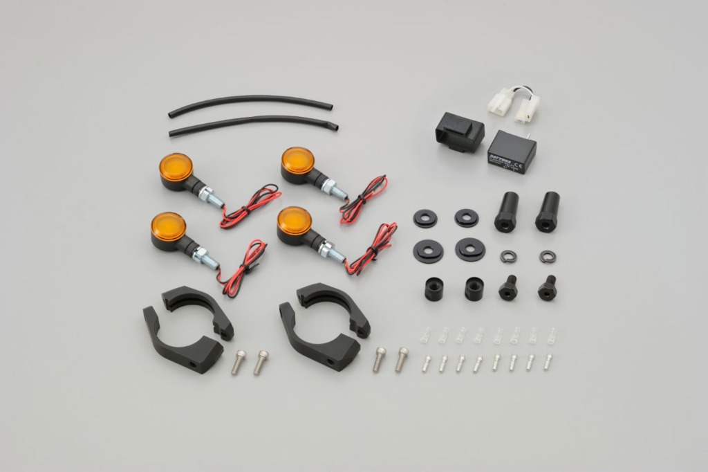 スタイリッシュでコンパクトな面発光LEDウインカー、D-Light SOLのボルトオンキット。ウインカー本体はアルミダイカスト製。