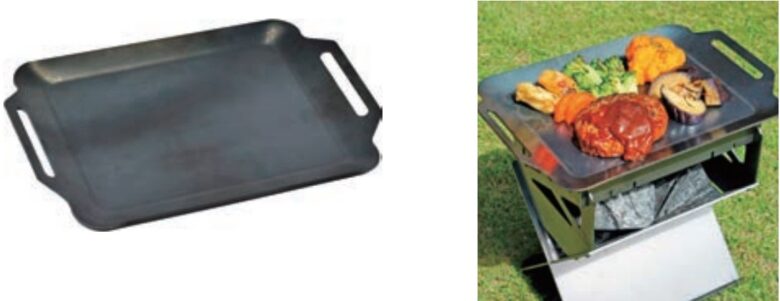 ファイヤーピットソロ用の鉄板も別売りでご用意。ジャストサイズなので安定感があり、安心安全に使える。