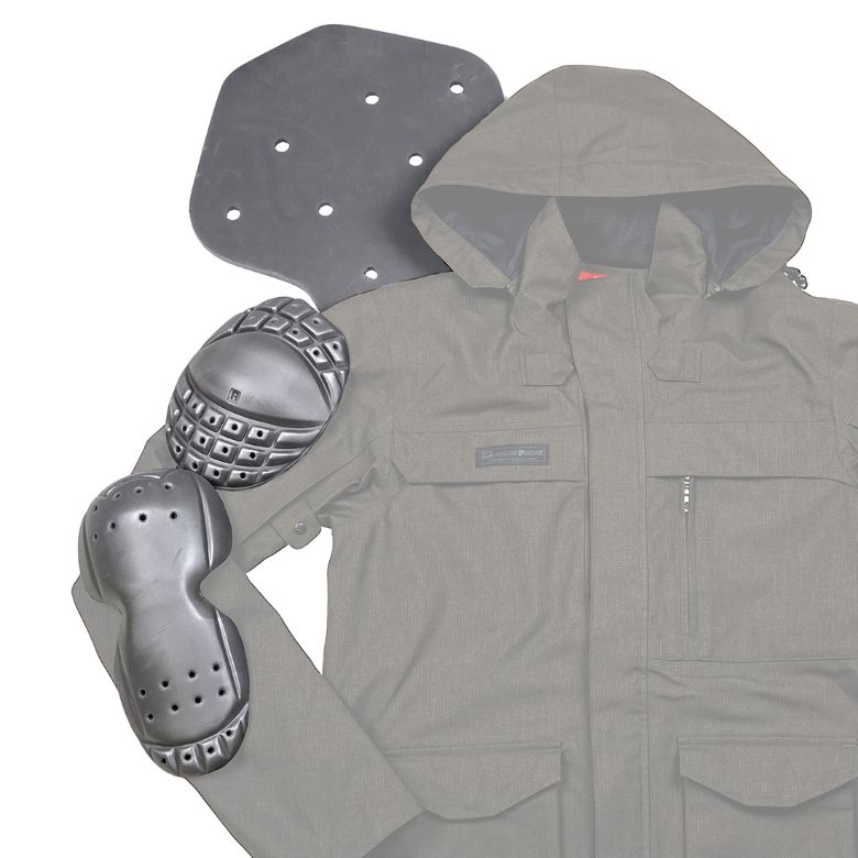 PROTECTOR:肩・肘・脊椎パッド付属 (肩・肘はCEパッド)、(胸パッドはオプション)