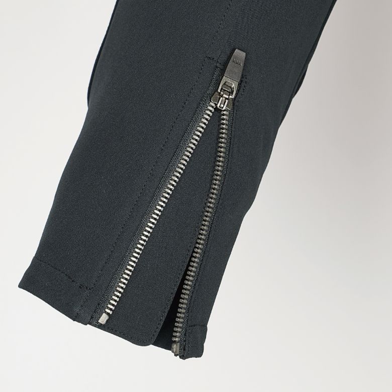 ストレッチ性のある表素材と、動きやすいライディングフォーム専用の立体裁断よりストレスを感じさせない軽快な着心地。洗練されたスタイルがコーディネートの幅と、行動範囲をグンと広げてくれる。