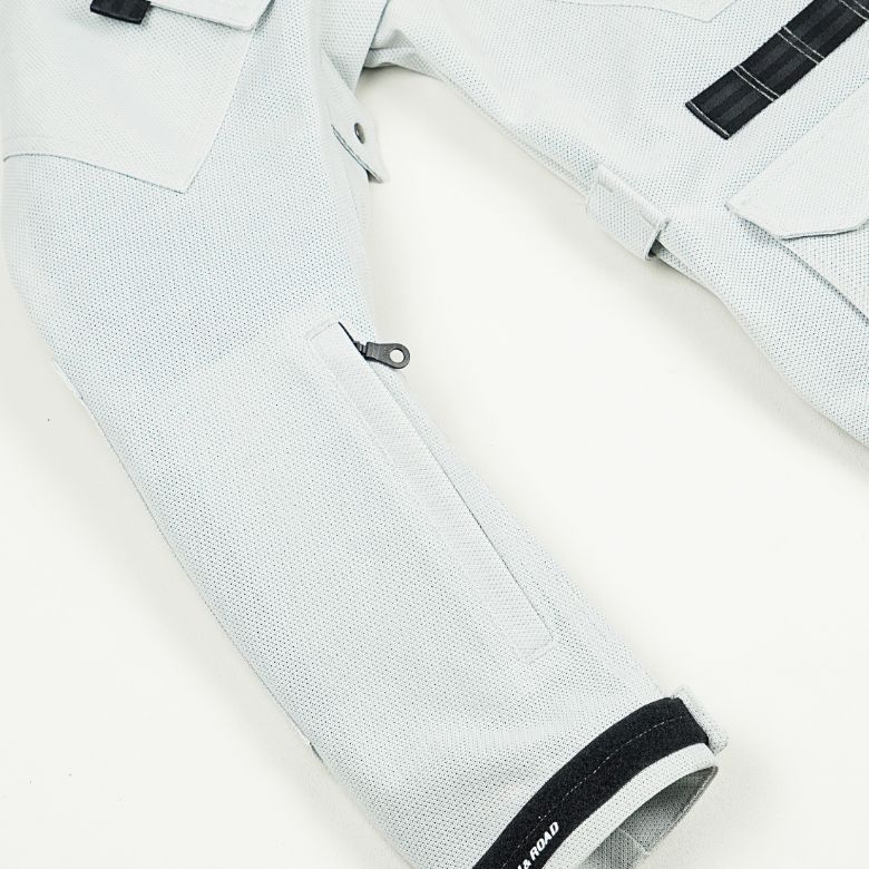 防水・防風・透湿性を兼ね備える高性能素材デュアルテックスと強力な撥水加工を施し湿気を逃がす透湿性があるため、衣服内を常にドライに保ってくれる。また、ライディングフォーム専用の立体裁断により、ストレスなく疲れを知らない快適な着心地となっている。おしゃれで上質なヘアライン柄の表地を採用。名所・旧跡地を訪ねたり、雰囲気の良いカフェにも躊躇なく入れるくらいのさりげないデザインで、行動範囲が広がる。