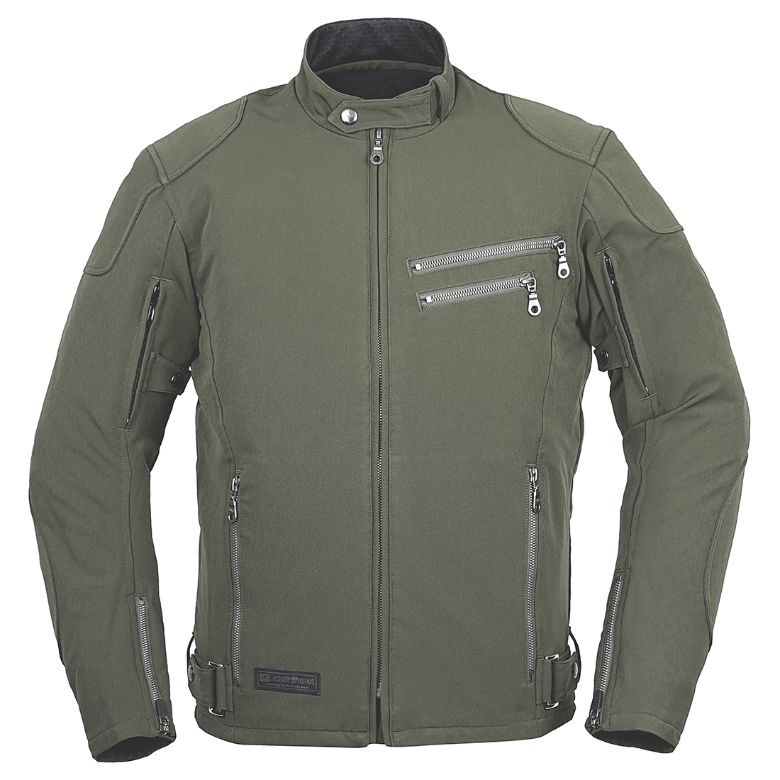 ビンテージ感たっぷりなデザインは時と場所、そしてバイクを選ばない。メイン素材にエアスルーソフトシェルを採用し夏場も日差しを遮りつつ程よい通気性があり、風を通しすぎないため、春夏秋と長期間着用可能。また、袖ベンチレーション、後ベンチレーションも装備されているため、真夏のライディングも快適だ。