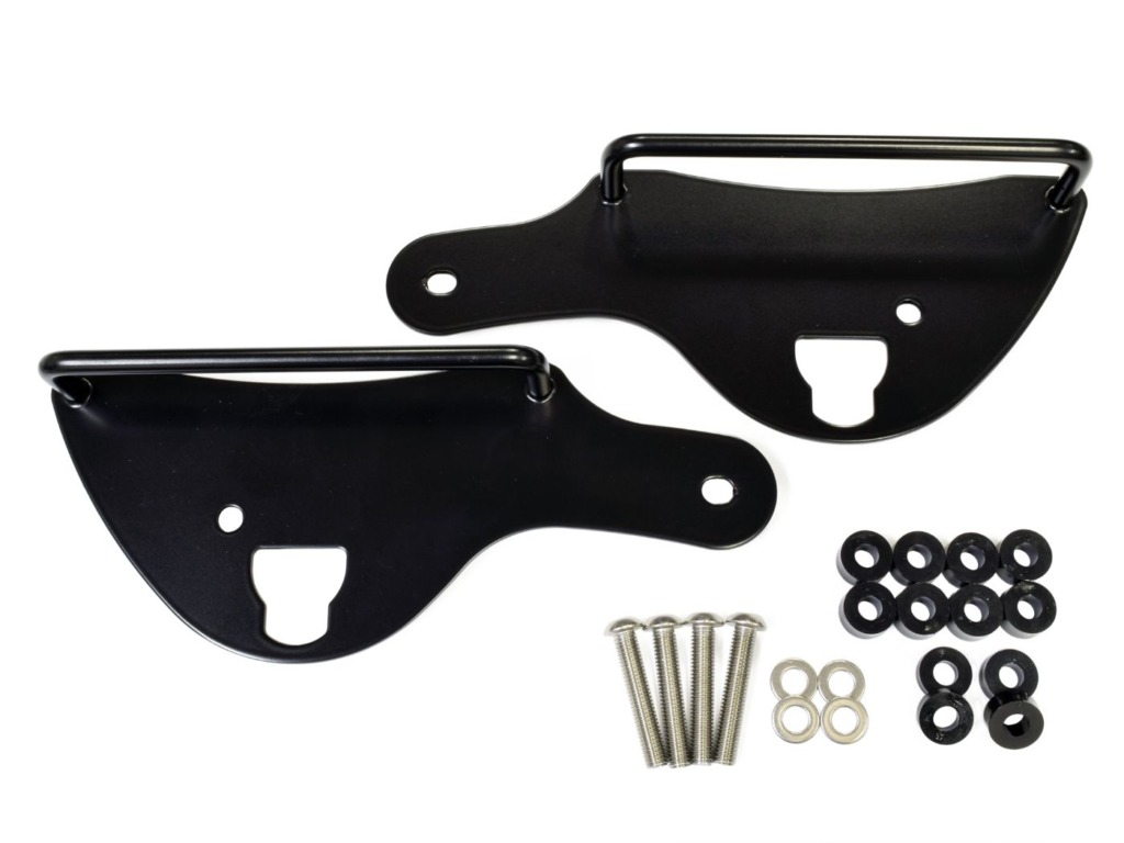 Klicbagサドルバッグを”ワンタッチ”で車体に取付けるためのブラケットは、バッグがサスペンション等に干渉しない最適なポジションにセットされるように、適合車種別にボルトオン設計となっている。