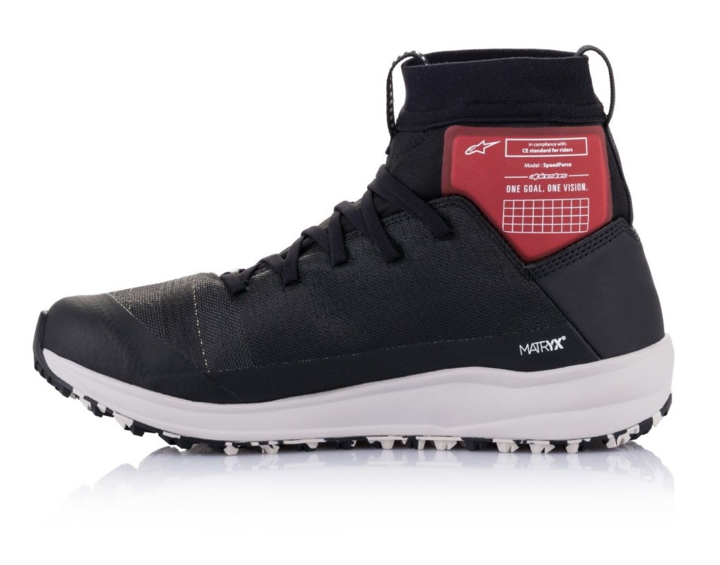 ケブラーとカーボンファイバーを組み合わせた高い耐摩耗性と優れた通気性を併せ持つ新素材【Matryx®】を採用し、しなやかなニットアッパーを使用したミドルカットライディングシューズだ。