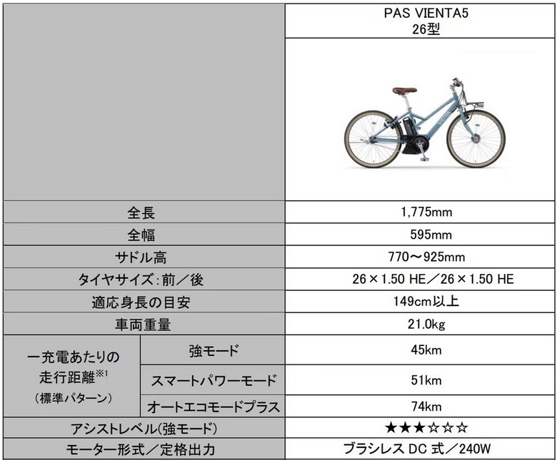 電動アシスト自転車「PAS VIENTA5」2022年モデルを発売
