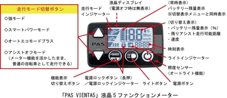 「PAS VIENTA5」に新たに搭載される「液晶5ファンクションメーター」