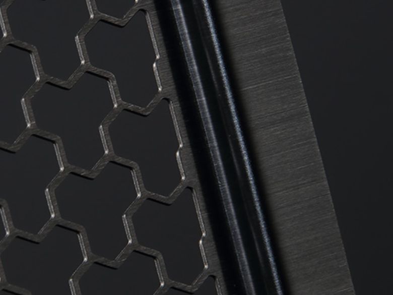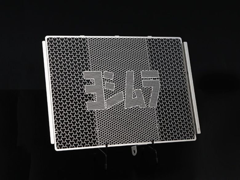 エッチング加工による高精度のhexagonal(ヘキサゴナル=亀甲)メッシュパターンを採用。ヨシムラ独自の「Yライン」を描く美しい網目の中央にはシンプルで主張しすぎないデザインの「ヨシムラ」ロゴを配置。ドレスアップ要素と実用性を備えている。