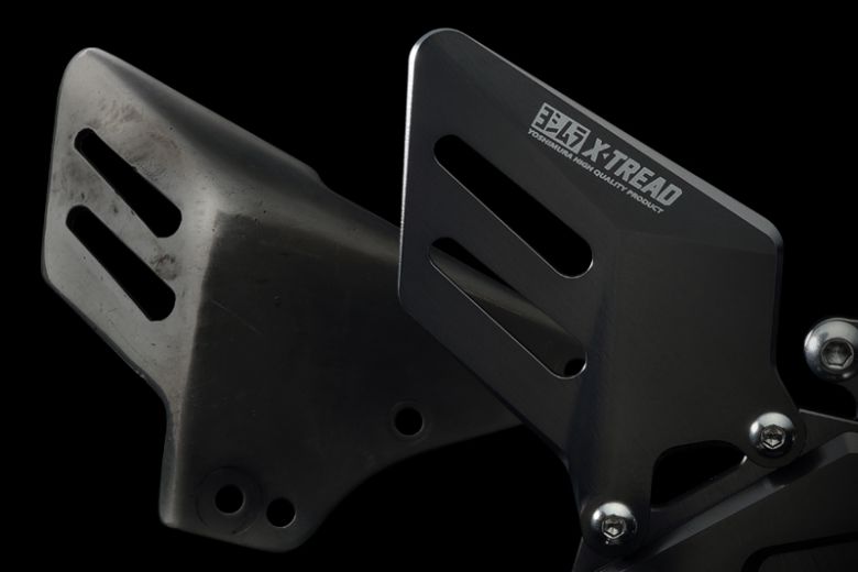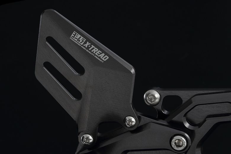 異なるスタイリングを持ちながら、GSX-RのDNAを引き継ぐエンジンをベースに開発されたGSX-S1000/F。そんなマシンにヨシムラが提案するチューニングがステップKIT「X-TREAD」だ。5つのポジション調整が可能で特別な切削加工を施した固定式ステップバーは、様々な走行シーンやライダーの体型に対応し、加重、抜重といったライダーの動作をダイレクトに車体に伝える。