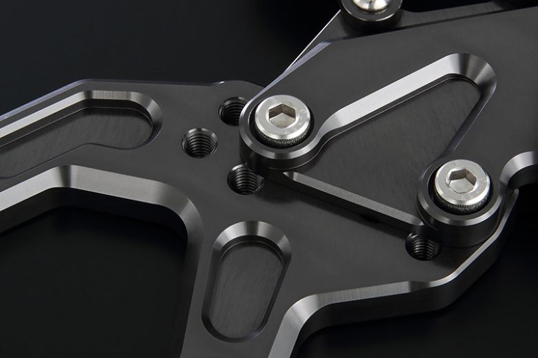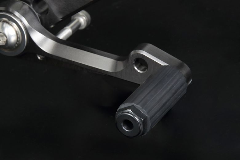 - 3面加工を施したヒールプレートのデザインは、ヨシムラGSX-R1000レーサーで採用された形状をオマージュしている。