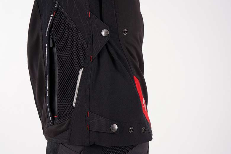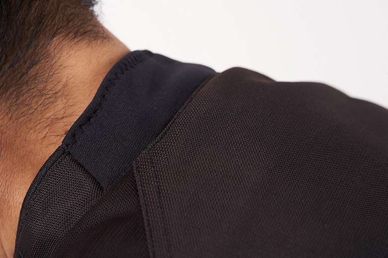 内袖と脇をストレッチ素材に切り替え。運動性を向上させる。