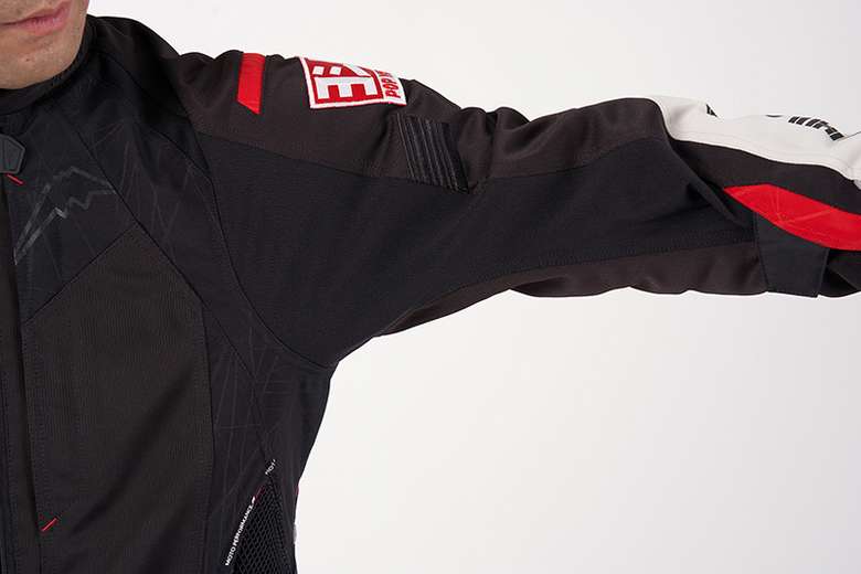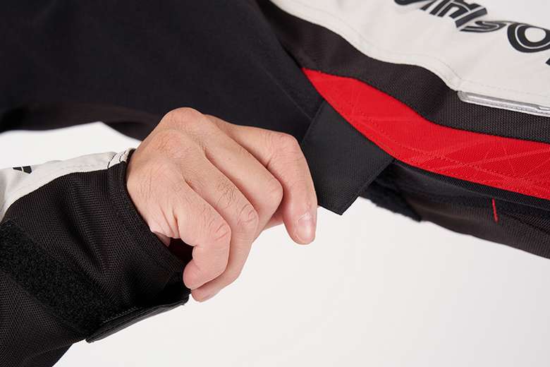 吸汗速乾機能を持つ2WAYストレッチメッシュ素材によるフィット性とプロテクターのバランスに優れる。掌には伸縮性と強度に優れたスエード調人工皮革を使用している。