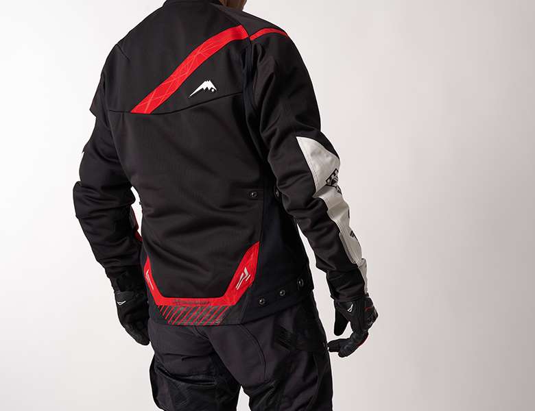 エアーコンテンドジャケットはナイロン素材とニット素材を組み合わせる事で運動性能と強度を両立。更に、腕の内側にはストレッチ素材、襟後ろにはネオプレン素材が使用されており、快適性を高めている。カラーはブラックとホワイトの2色展開でどちらも赤の差し色が効いたスマートな印象だ。
