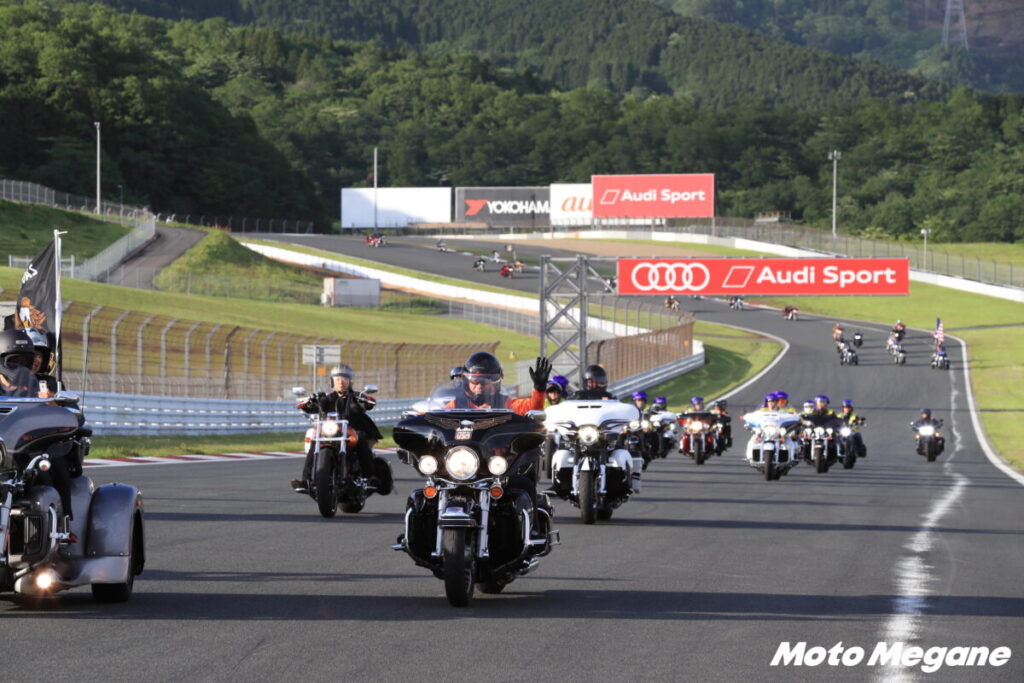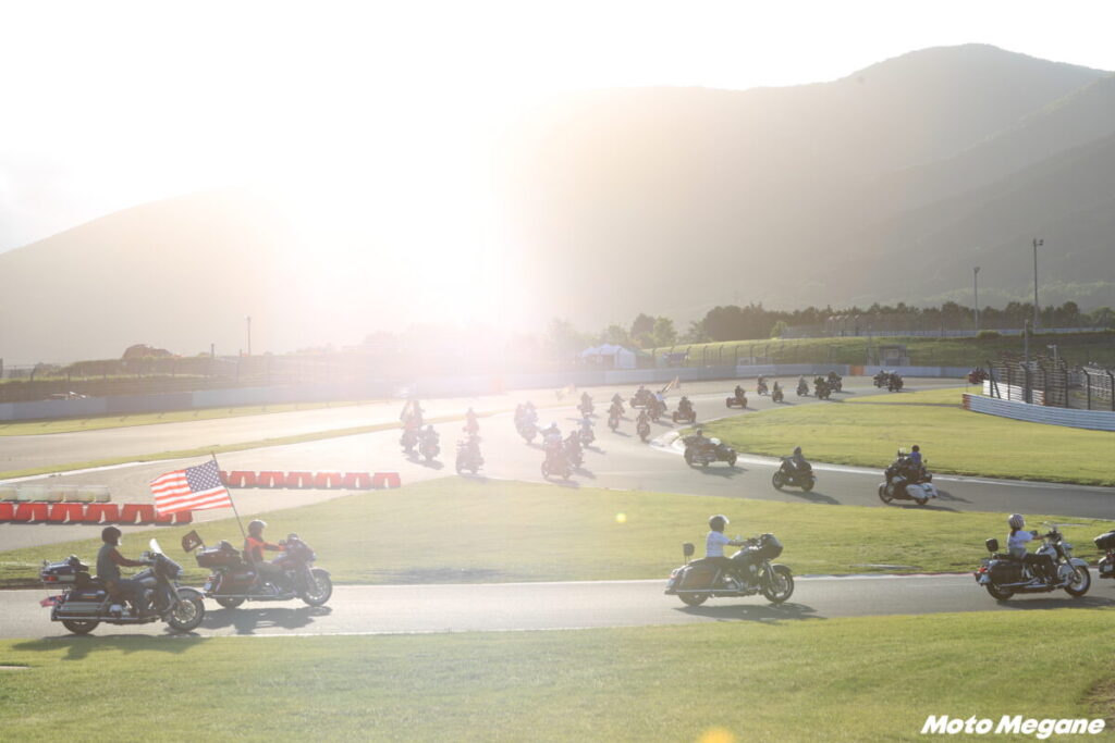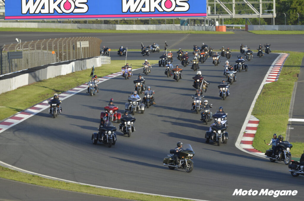 F1も開催された、世界でもトップクラスの施設を持つ国際レーシングコースの富士スピードウェイ。ハーレーオーナーに向けて、なかなか走る機会がない本コースを愛車で走れる体験走行会、タイム計測つきのドラッグレース体験走行を用意。ハーレーオーナーズグループ(H.O.G)によるパレードでは約1000台が一斉にサーキットを走り、その様はまさに圧巻だ!
