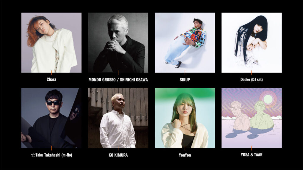 出演:Chara、Daoko(DJ set)、KO KIMURA、MONDO GROSSO / SHINICHI OSAWA、SIRUP、