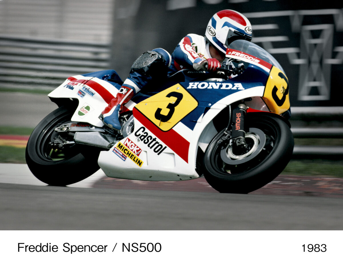 フレディ・スペンサーは、1983年にWGP500クラスで当時史上最年少チャンピオンを獲得。さらに1985年には、WGP500と250の両クラスでチャンピオンを獲得するという、とんでもない偉業をやってのけた。いま見ても十分すぎるほど衝撃的な実績であり、“天才”の呼び名がまったく大げさではないライダーである。