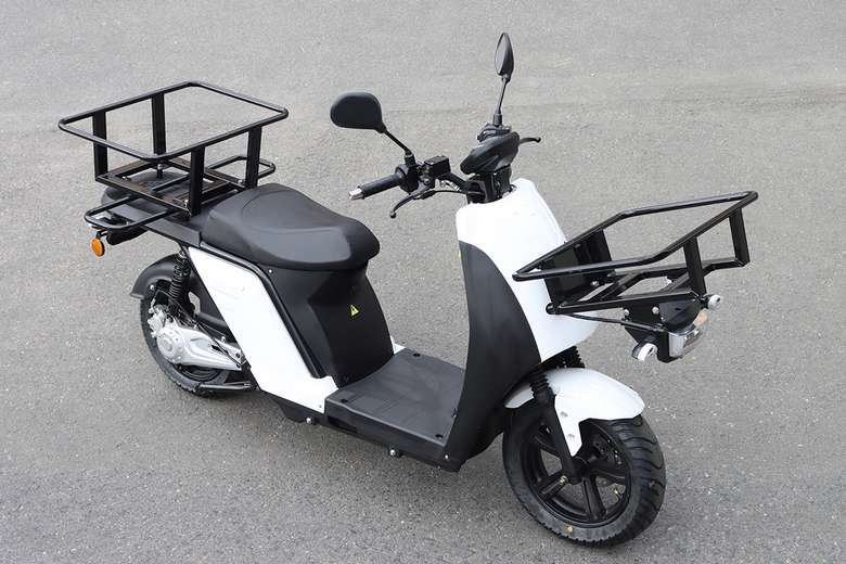 エコでパワフルなモーターとバッテリーを搭載した電動バイク。剛性があり、しっかりとした作りの前後キャリアを標準装備しているのが最大の特徴だ。新聞配達をはじめ幅広い配達業務などで活用する事を想定した装備などを備えている。