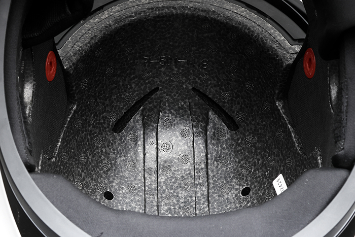 ABS樹脂製のシェルの内側には、密度の異なるEPS素材を組み合わせた多密度構造のライナーを採用。 衝撃の大きさや方向に応じてエネルギーを効率的に分散・吸収し、頭部への衝撃を効果的に軽減します。 LITHIUM CRFの高い安全性を支える重要な構造となっています。