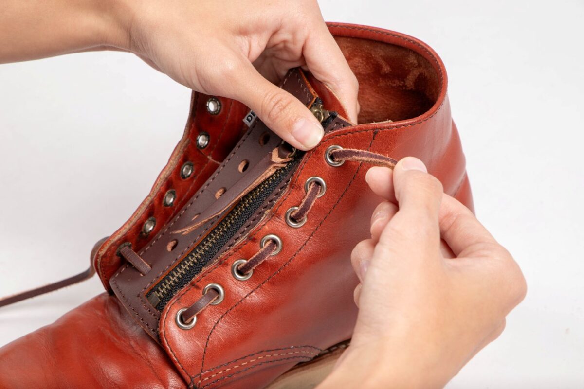 同製品は、靴紐を解かずに着脱できる利便性を特徴とし、ブーツの脱ぎ履きの手間を軽減するアイテムとなる。内側・外側いずれにも装着可能で、付属の靴紐により自由なカスタマイズにも対応。素材には天然タンニンなめしの牛革を採用し、ブラック、ブラウン、タンの3色を用意、価格は6,600円(税込)となる。