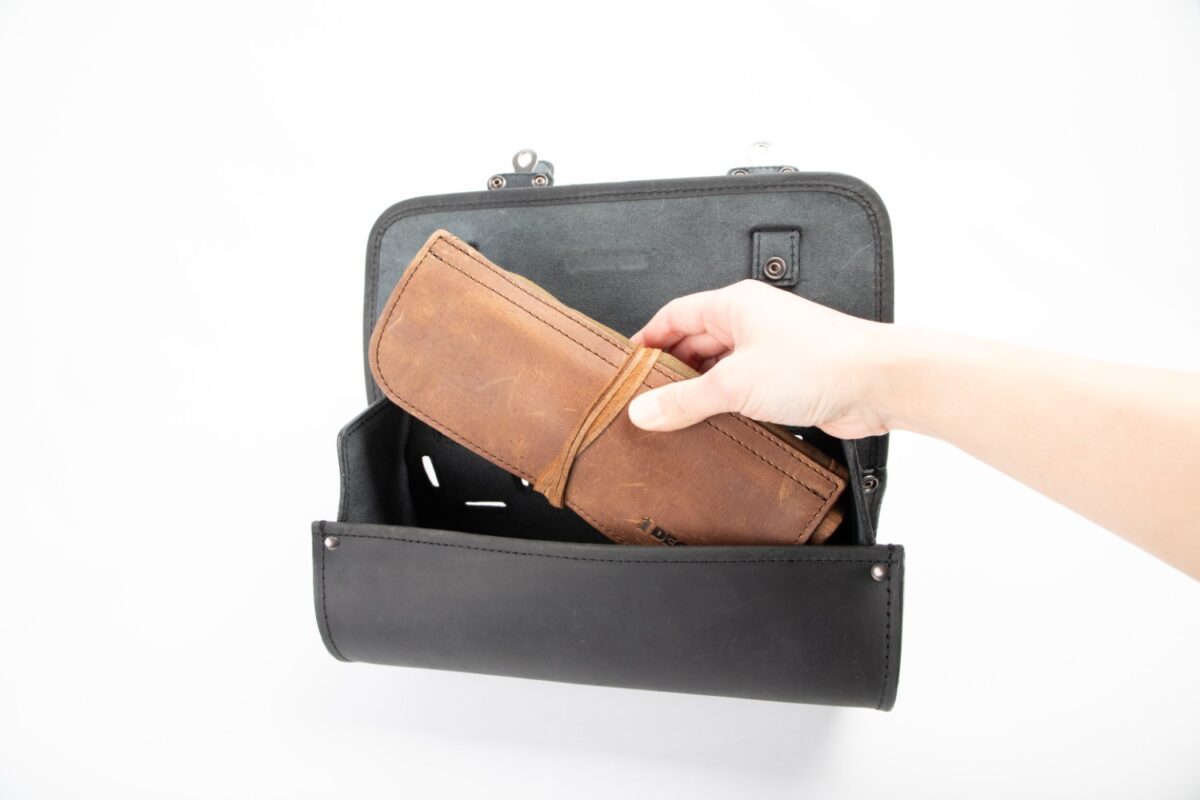 くるくる巻くだけ。TB-3INなどのツールバッグにおさまる本革の工具巻き。