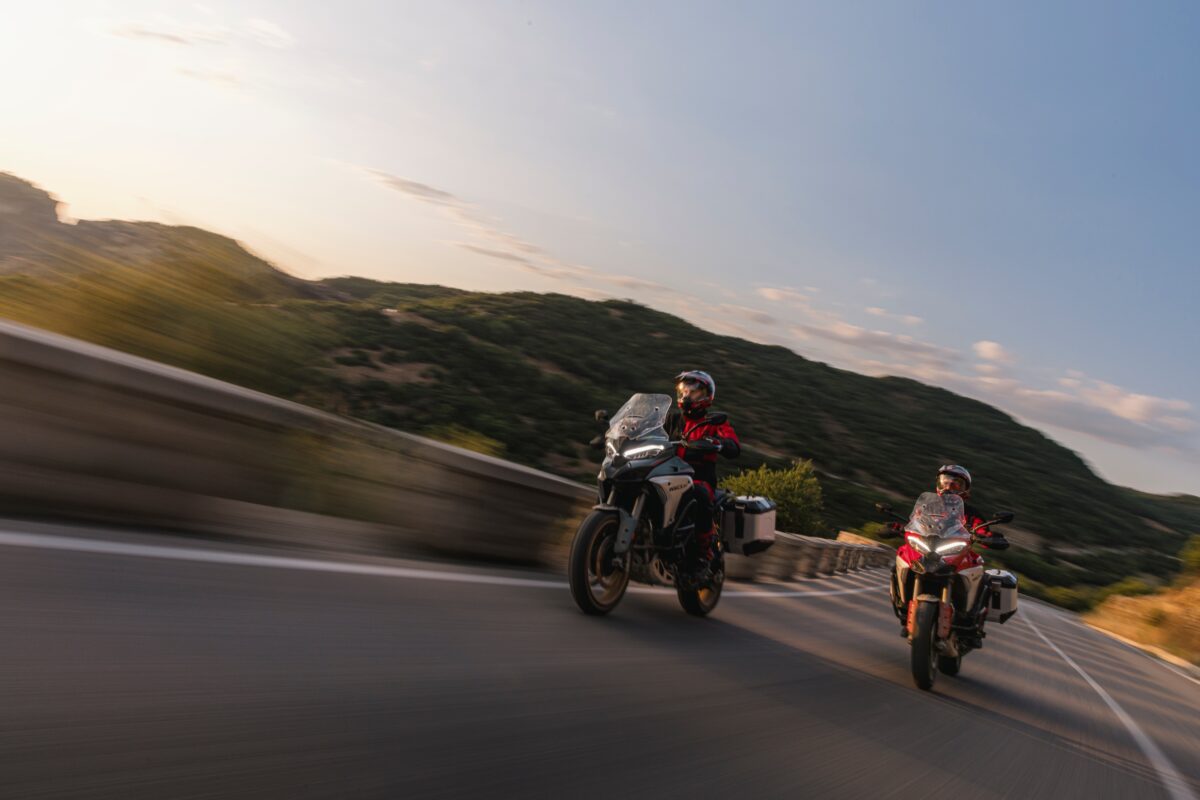 ムルティストラーダV4ラリーは、二人乗り走行に最適なモーターサイクルであり、ライダーとその旅の相棒の快適性を最大限に高めるよう設計されています。ムルティストラーダV4と比較して、40mm幅広かつ20mm高くなったウインドシールドは、より優れた保護性能を提供します。パニアマウントの位置は、パッセンジャーに十分な足元スペースを確保するよう設計されています。ダイカスト製サポートにより、トップケースからの高い支持性と頑丈さも同乗者に提供されます。さらに、ライダーと同乗者双方に異なるシート高が用意され、ローダウンサスペンションキットも標準装備されているため、ムルティストラーダV4ラリーはあらゆる二人乗り構成に合わせてカスタマイズ可能です。