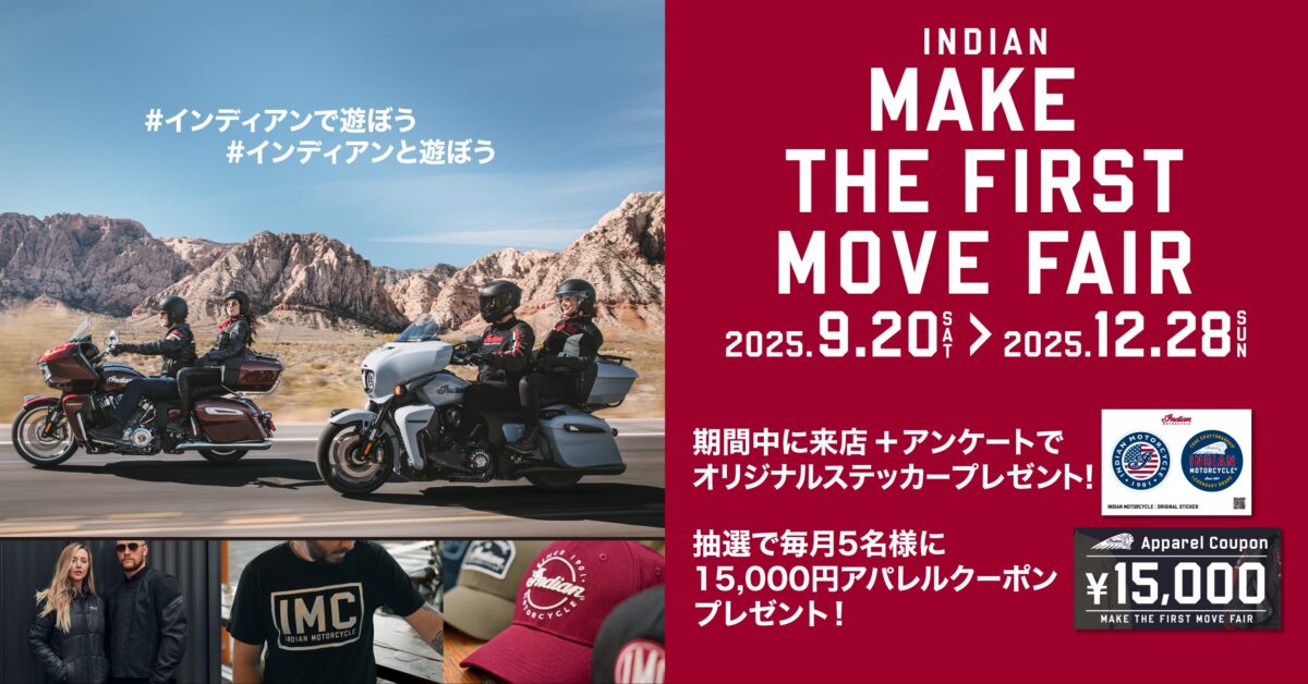 ポラリスジャパン株式会社は、同社が展開するインディアンモーターサイクルの魅力を伝える店頭フェア「Make The First Move Fair」を、2025年9月20日から12月28日まで開催している。