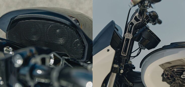 PowerBand Audio Bluetooth® スピーカーは、Scoutのハンドルバーライザーとクォーターフェアリングの間に取り付けられ、76mmミッドレンジスピーカー×2、137mmサブウーファー×1、ツイーター×2を搭載。高速走行時でも90ワットのクリアなサウンドを実現します。