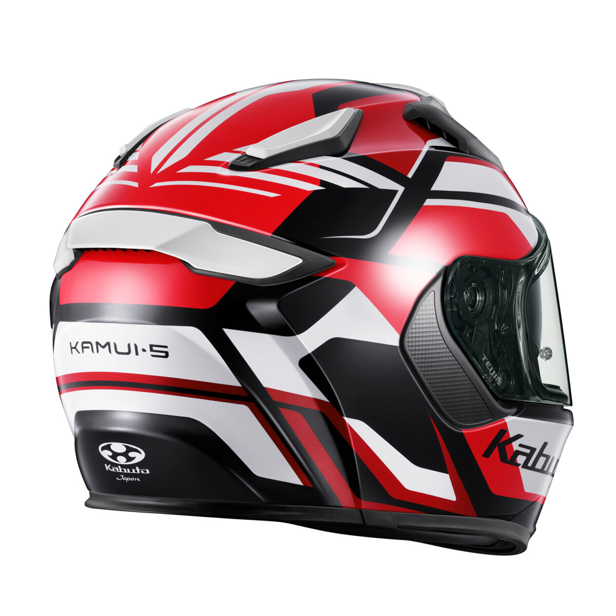 従来の紫外線カットに加え、ヘルメット内部への熱伝導を低減する赤外線カット素材を使用したシールドと大型インナーサンシェードを装備した、フルフェイスヘルメット「KAMUI-5(カムイ・5)★」に新たなグラフィックモデル「KAMUI-5 GRAVIX(カムイ・5 グラヴィクス)」を追加します。