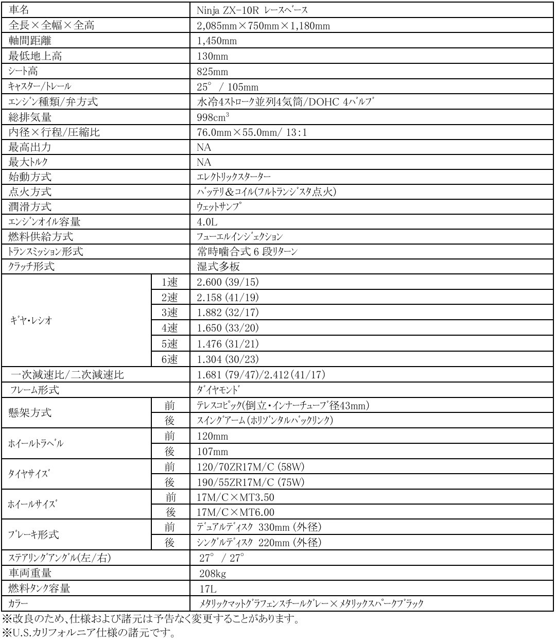 ニューモデル「Ninja ZX-10R」、レース専用モデル特別発売のご案内です。ご注文受付期間には限りがございますのでご注意下さい。