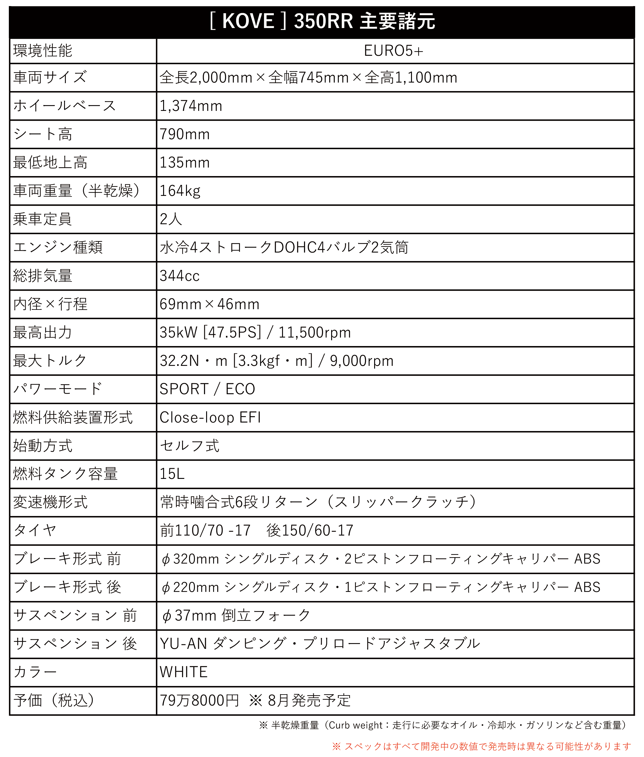 KOVE JAPANは、スーパースポーツモデル「350RR」の2026年モデルを日本市場向けに導入し、2026年8月に発売予定と発表した。
