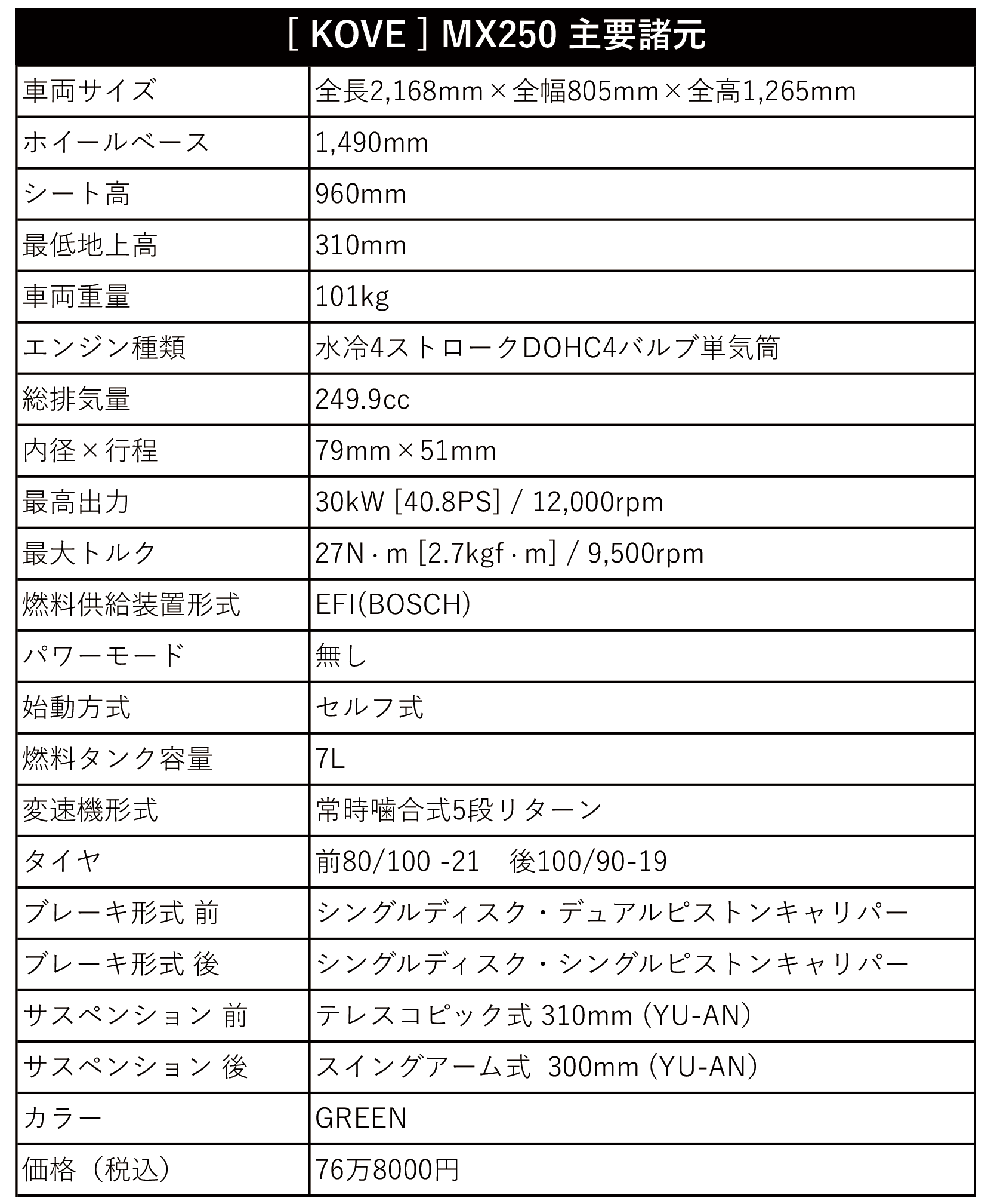KOVE JAPANが76万円のモトクロッサー「MX250」を発売