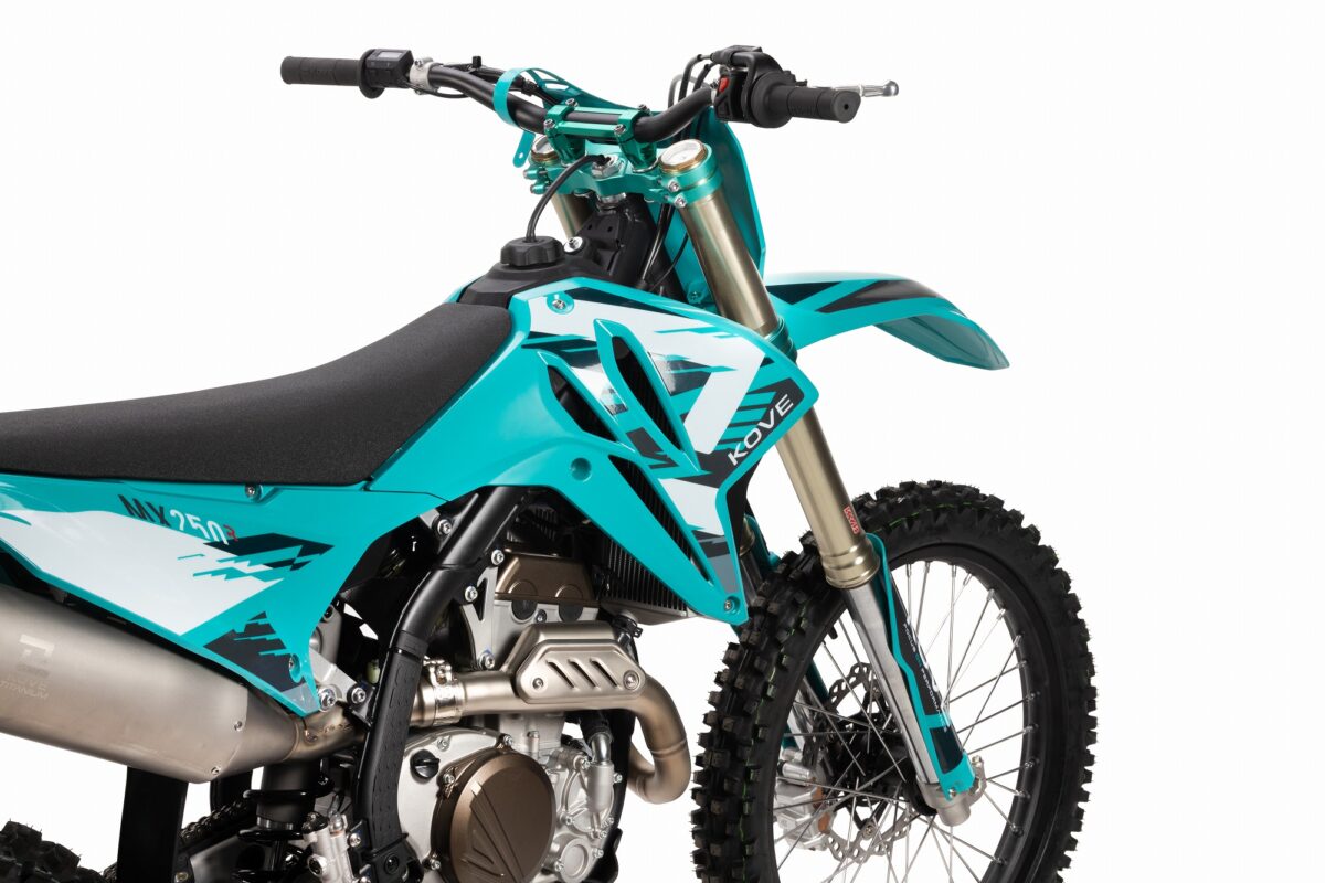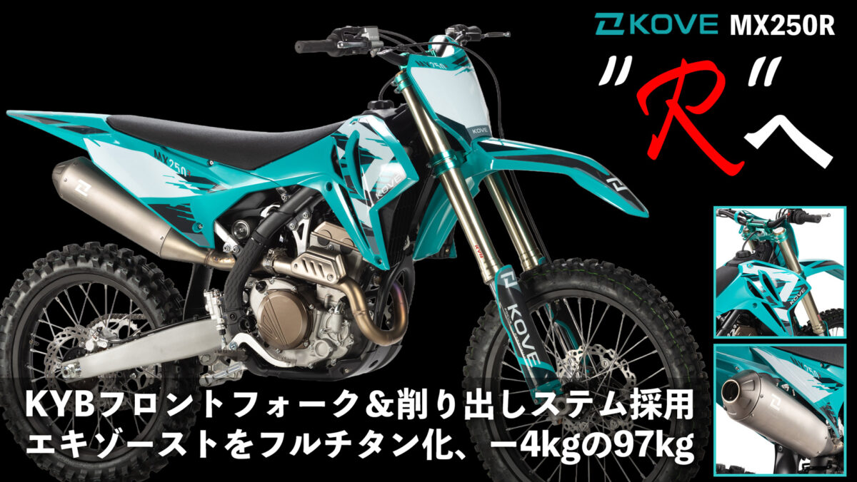 KOVEのモトクロッサーMX250が「R」にアップグレード。KYBフロントフォーク採用、フルチタンエキゾーストで4kg軽量化し車重97kg、パワーモード切替(SPORT / ECO)装備と、さらに戦闘力を強化した
