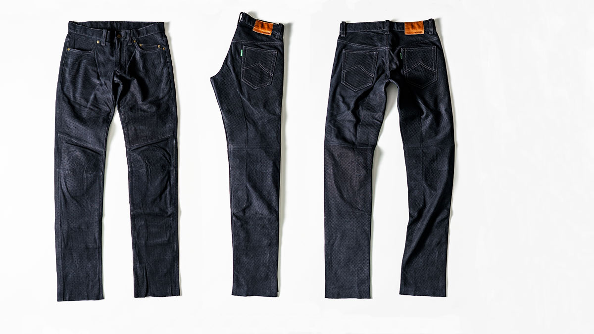 よりライディング向けに、そしてスマートなローライズシルエットが特徴のエクスプローラーライドジーンズのメッシュモデルです。尻部から膝部にかけて車両からの排熱を和らげる目的で本体裏側に当て革を取り付け、当て革と共に輻射熱を反射するアルミ蒸着素材を配しています。裏地にはCOOLMAX®素材を採用しています。