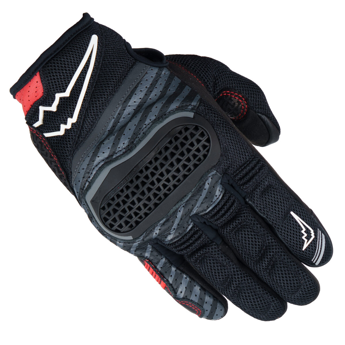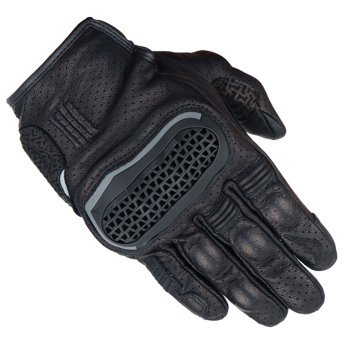シンプルなデザインのパンチングメッシュレザーグローブながら、フィンガープロテクター、パームプロテクター、リフレクト、スマホタッチ、フィンガーシャーリングを備えたグローブです。独自開発のベンチレーション機能を備えたナックルプロテクターを装備しています。