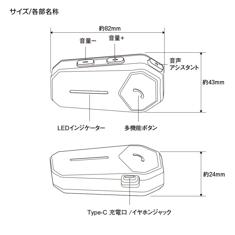 サイズ:約82×43×24mm(本体)