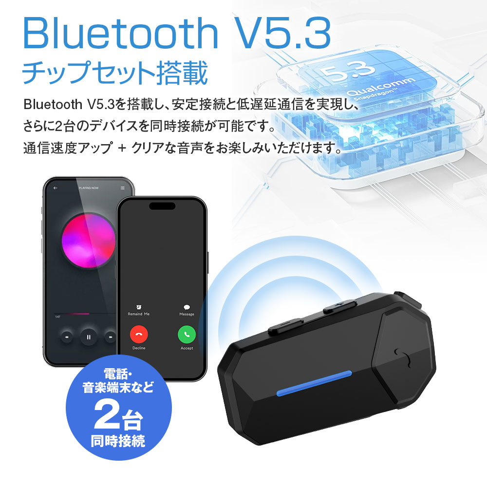 Bluetooth V5.3を搭載し、安定接続と低遅延通信を実現し、さらに2台のデバイスを同時接続が可能です。通信速度アップ+クリアな音声をお楽しみいただけます。