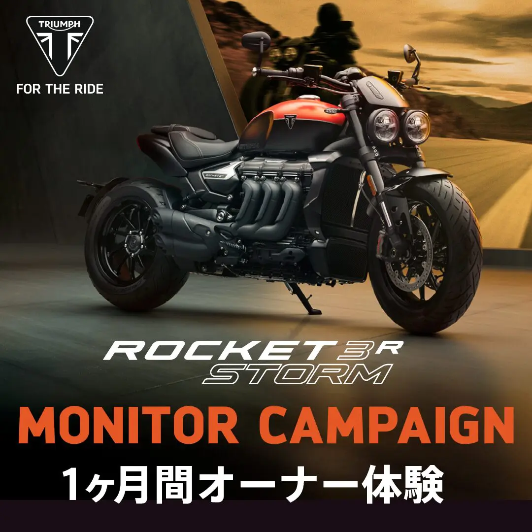 トライアンフモーターサイクルズジャパン株式会社は、2025年9月26日(金)~10月26日(日)の期間、「ROCKET 3 STORM R モニターキャンペーン」を実施している。