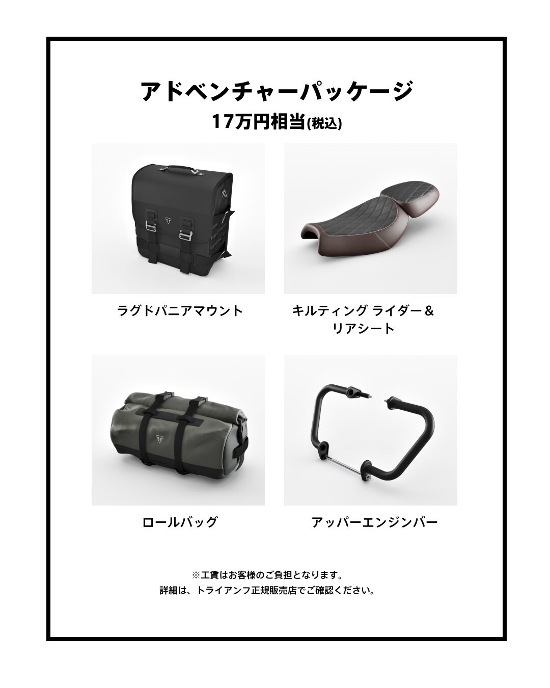 ※工賃はお客様のご負担となります。詳細は、トライアンフ正規販売店でご確認ください。
