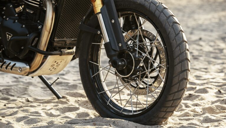 トライアンフスクランブラーのデザインDNAを受け継ぐ、タフで堂々としたスタイリングが印象的。アルミニウムサンプガードとハイレベルフロントマッドガード&フライスクリーンの組み合わせで、どんな道でも高いプロテクションを実現します。