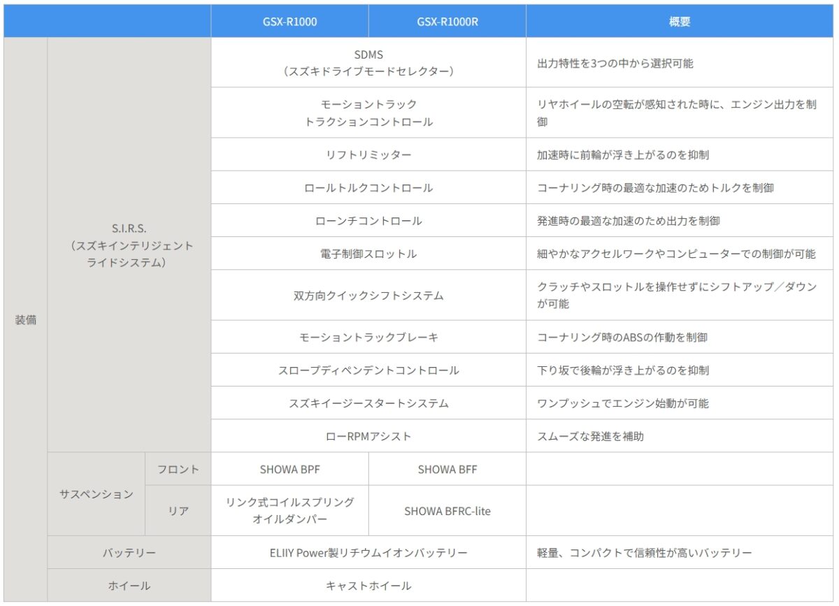 「GSX-R1000」、「GSX-R1000R」の主な変更内容
