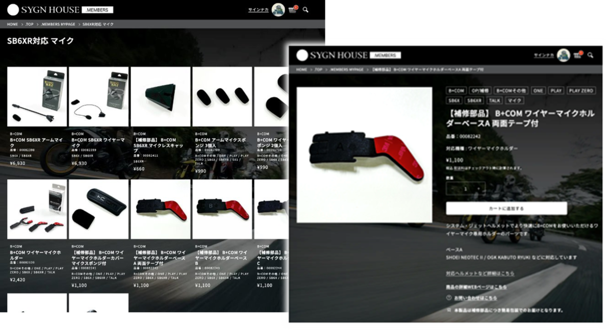 ③パーツショップ(会員限定):付属品やオプション品、補修部品をオンラインで購入できます。購入費用5,000円以上(税込)で送料無料です。決済方法は、クレジットカードおよび代引き予定です。※B+COM製品のみの販売。