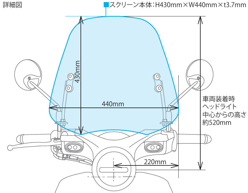 ※車体カバーをご使用になる場合は、スクリーンに無理のかからないサイズの物をご使用下さい。(スクリーンが変形したり、ステーが曲がる恐れがあります。)