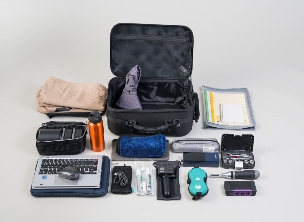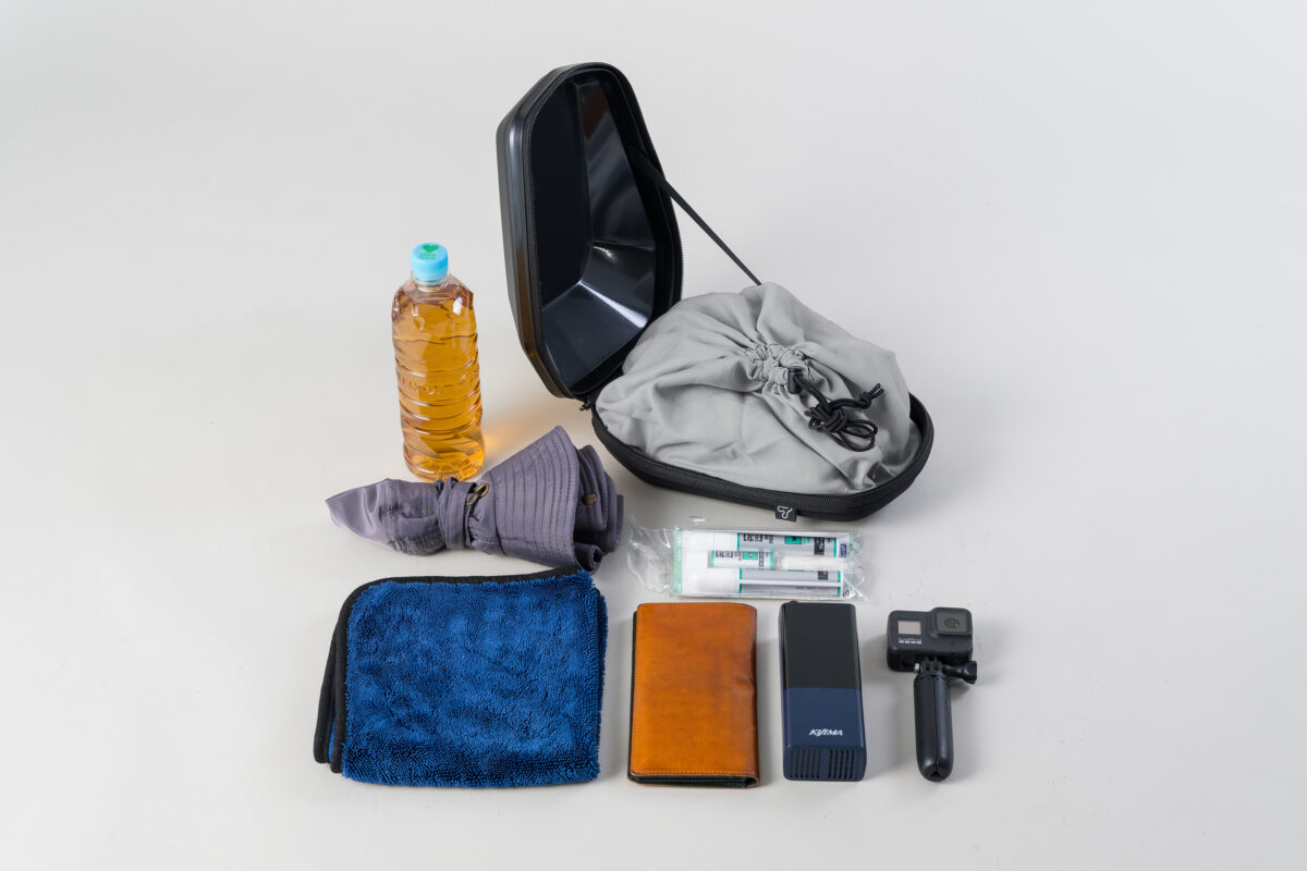 必要最小限の携行品をひとまとめにできる容量です。車載工具の収納にも使えます。