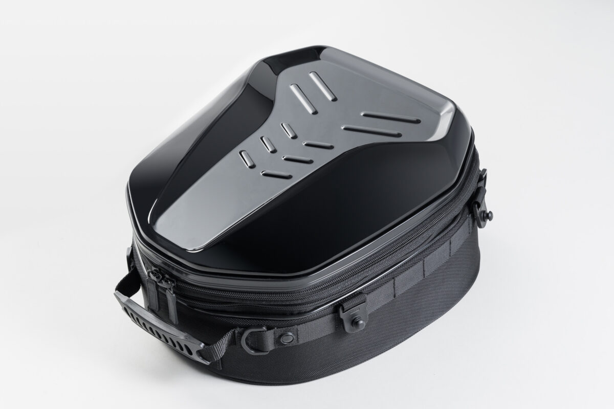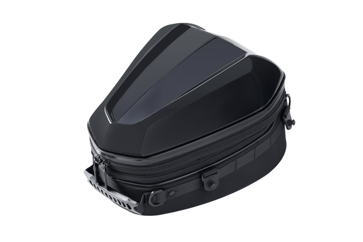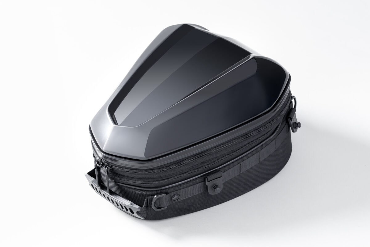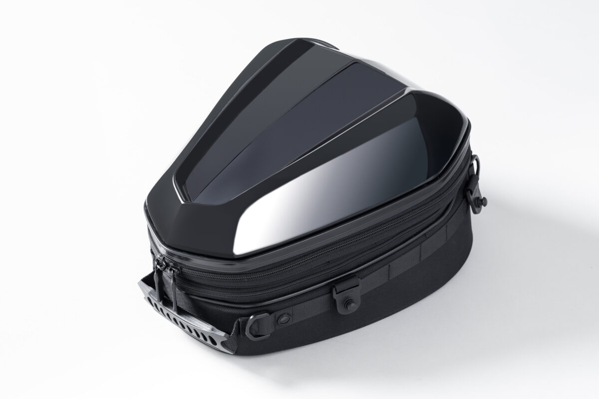 車両のカウルと馴染む質感のPCシェルが特徴的な、標準サイズのシートバッグ。シートバッグとしての機能と、PCシェル特有のルックスのバランスの良さが特徴の人気モデルを最新機能でリニューアル。