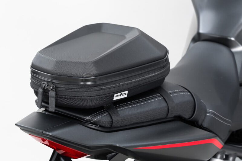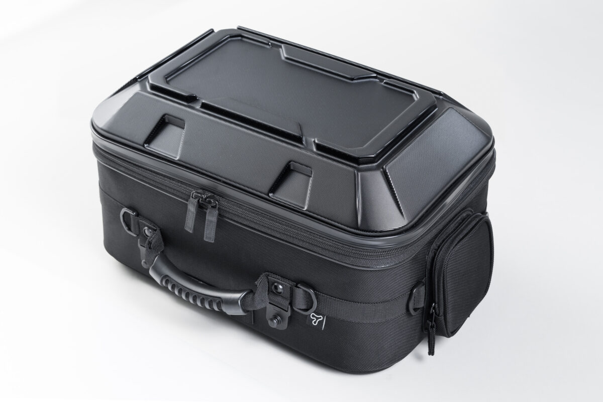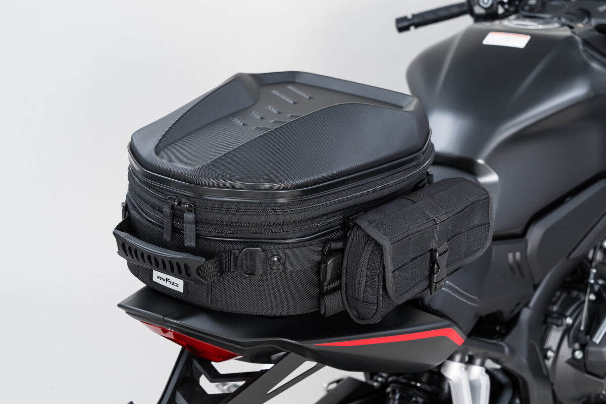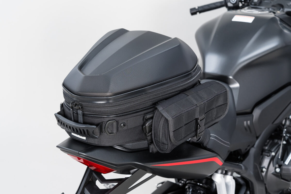 車両のカウルと馴染む質感のPCシェルが特徴的な、標準サイズのシートバッグ。シートバッグとしての機能と、PCシェル特有のルックスのバランスの良さが特徴の人気モデルを最新機能でリニューアル。