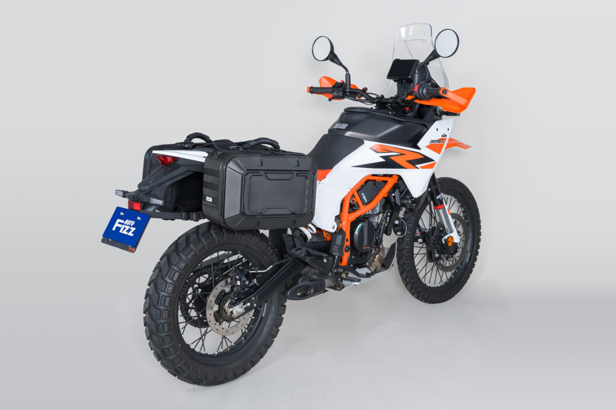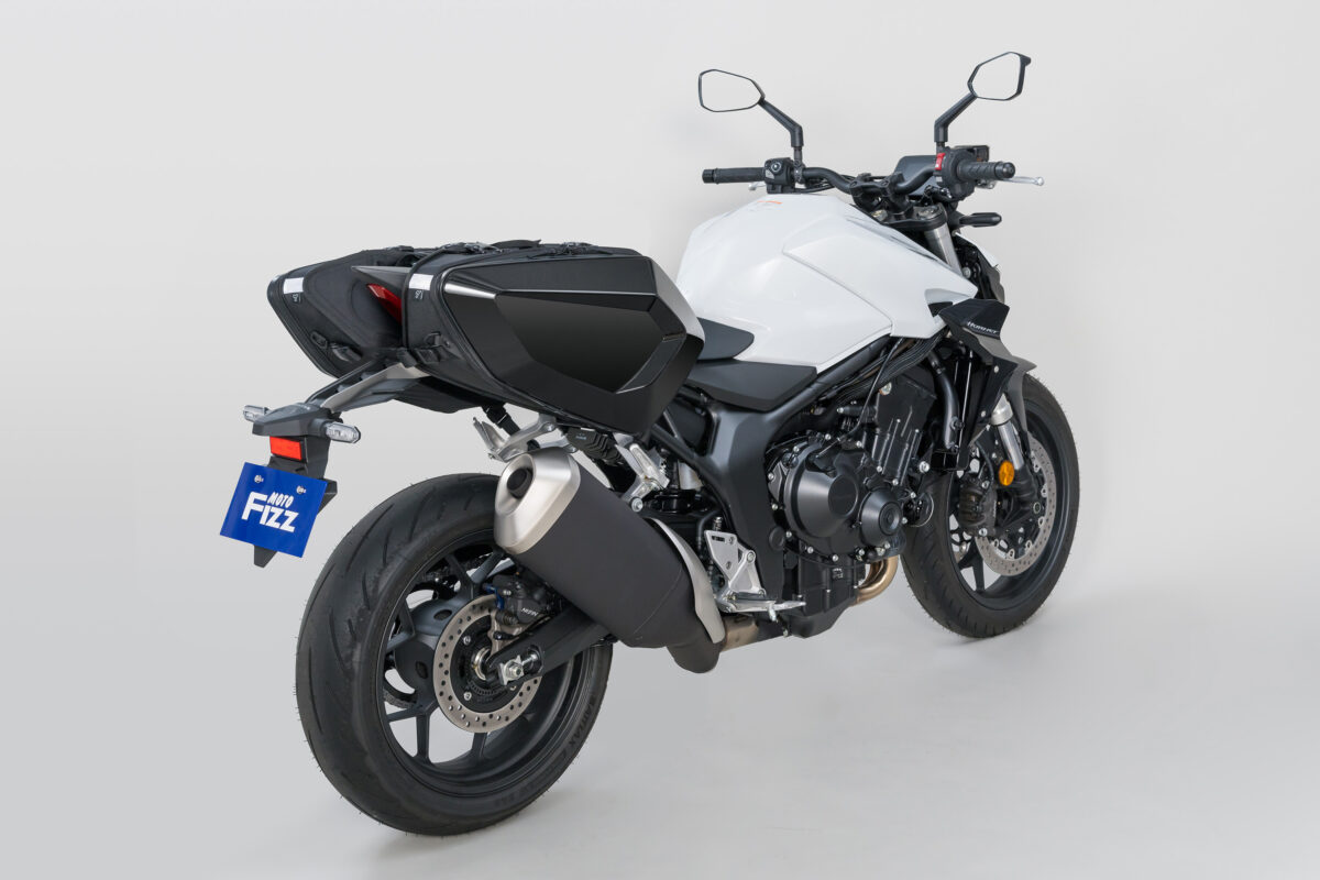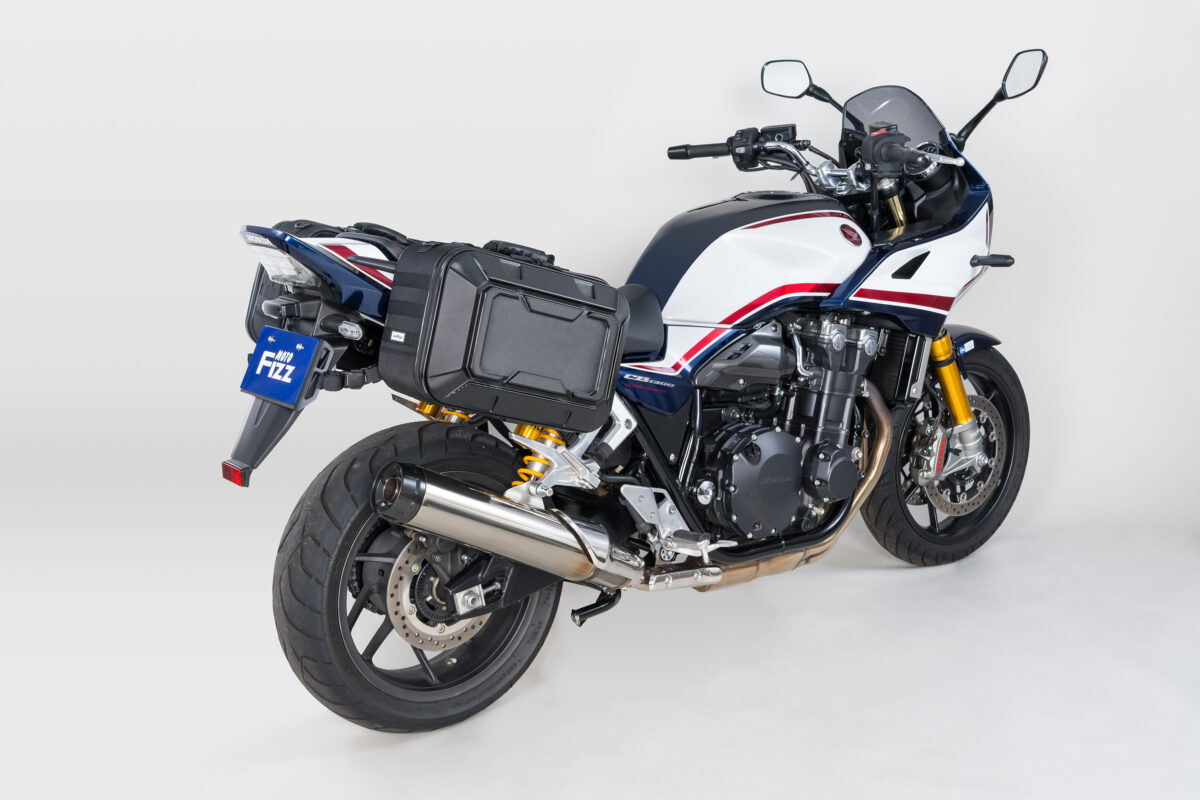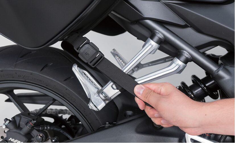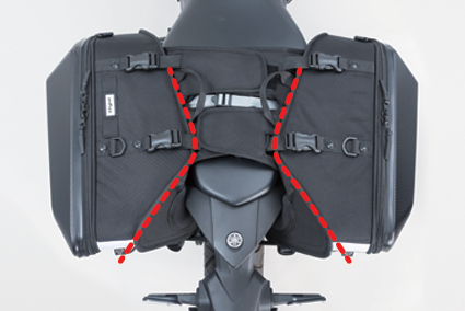 両サイドのバッグを橋渡しするコネクションベルトベルトを使うことで、フェンダーレス仕様の車両にも対応します。