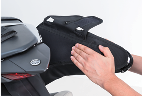 ネオプレン生地がシートカウルの凹凸を吸収しバッグを車両にぴったりフィットさせます。