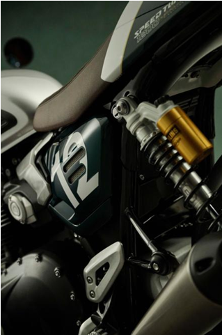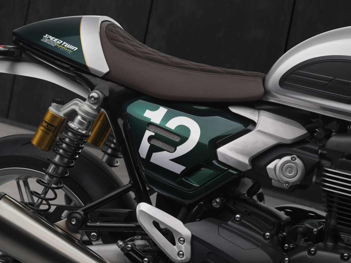 よりダイナミックで没入感のあるライディングを求めるライダーに向けて、「Speed Twin 1200 Cafe Racer Edition」は、低く構えたクリップオンハンドルによる、いっそう研ぎ澄まされたライディングポジションを採用しています。Speed Twin 1200 RS同様、その俊敏なキャラクターを支えるのはトップスペックのサスペンション。フルアジャスタブルのマルゾッキ製フロントフォークに、オーリンズ製リアサスペンションを組み合わせています。