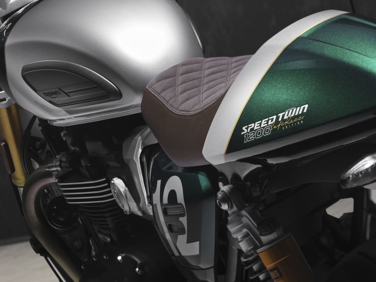その佇まいを完成させるのが、コンペティション・グリーンで仕上げられたヘッドライトボウルとフォークプロテクター、そしてアルミニウム・シルバーの要素と呼応するブラッシュドアルミニウム製の前後マッドガードです。その結果、「Speed Twin 1200 Cafe Racer Edition」は、トライアンフのレーシングヘリテージに根ざしながらも、現代的な精度と細部への徹底したこだわりによって磨き上げられた、タイムレスで明確な目的意識を感じさせる一台に仕上がっています。