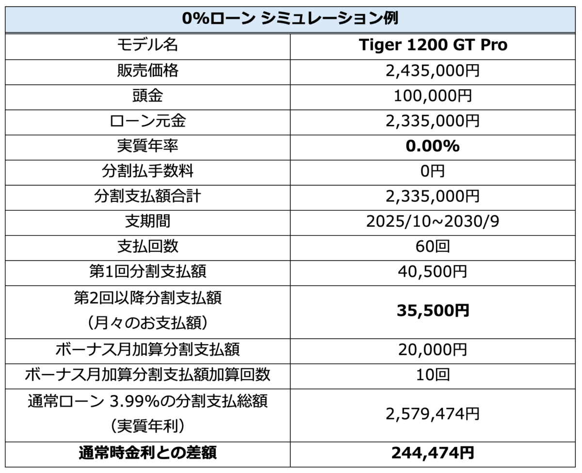 Tiger 1200をご購入検討中のあなたに、とっておきのオファーをご用意いたしました。人気モデルTiger 1200を対象とした0% 特別無金利ローンが登場!