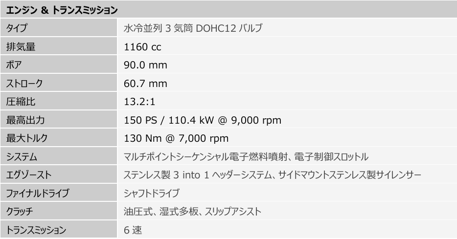 三気筒エンジンが生み出す圧倒的なパフォーマンス